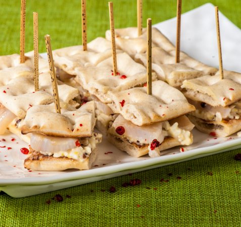 Mini-sandwich carpaccio de Saint-Jacques et chou-fleur